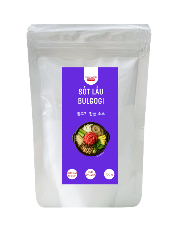 Q: Sốt lẩu Bulgogi dùng để làm gì?A: Sốt được dùng làm nước lẩu Bulgogi hoặc ướp thịt bò, heo, gà để tạo hương vị đặc trưng Hàn Quốc.Q: Một gói 150g dùng được cho bao nhiêu khẩu phần?A: Một gói 150g thường đủ cho 2–3 người ăn tùy theo cách pha loãng hoặc chế biến.Q: Sốt có vị cay không?A: Sốt Bulgogi truyền thống có vị ngọt mặn dịu nhẹ, không cay – phù hợp cho cả trẻ em.