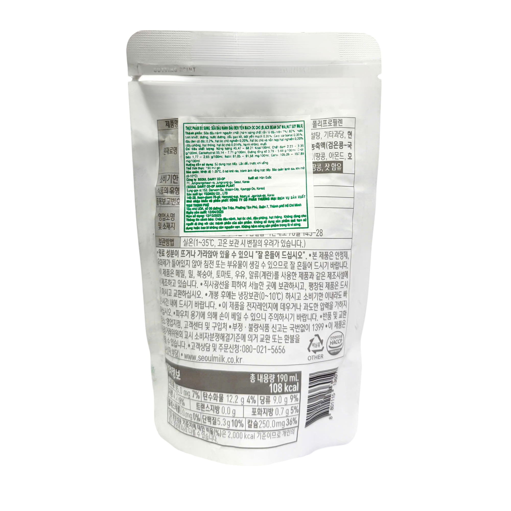 Sữa đậu nành đậu đen yến mạch óc chó Seoul Milk 190ml