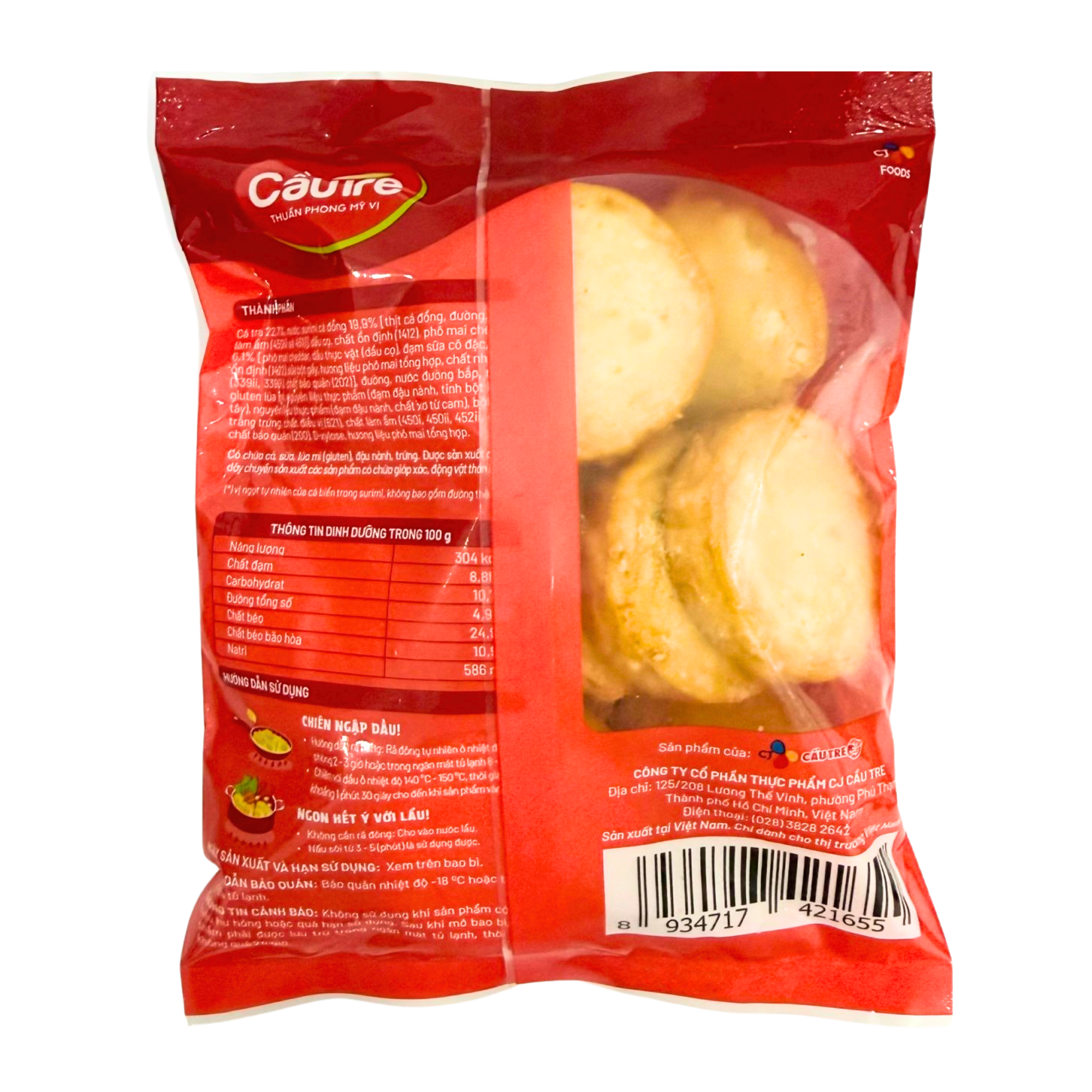 Thành phần: Cá tra 22.7%, nước surimi cá đổng 19.9% [thịt cá đổng, đường, chất làm ẩm (450iii và 451i)], dầu cọ, chất ổn định (1412), phô mai cheddar 6.1% [phô mai cheddar, dầu thực vật (dầu cọ), đạm sữa cô đặc, chất ổn định (1422), sữa bột gầy, hương liệu phô mai tổng hợp, chất nhũ hóa (339ii, 339iii), chất bảo quản (202)], đường, nước đường bắp, muối, gluten lúa mì, nguyên liệu thực phẩm (đạm đậu nành, tinh bột khoai tây), nguyên liệu thực phẩm (đạm đậu nành, chất xơ từ cam), bột lòng trắng trứng, chất điều vị (621), chất làm ẩm (450i, 450ii, 452i, 452ii), chất bảo quản (200), D-xylose, hương liệu phô mai tổng hợp.