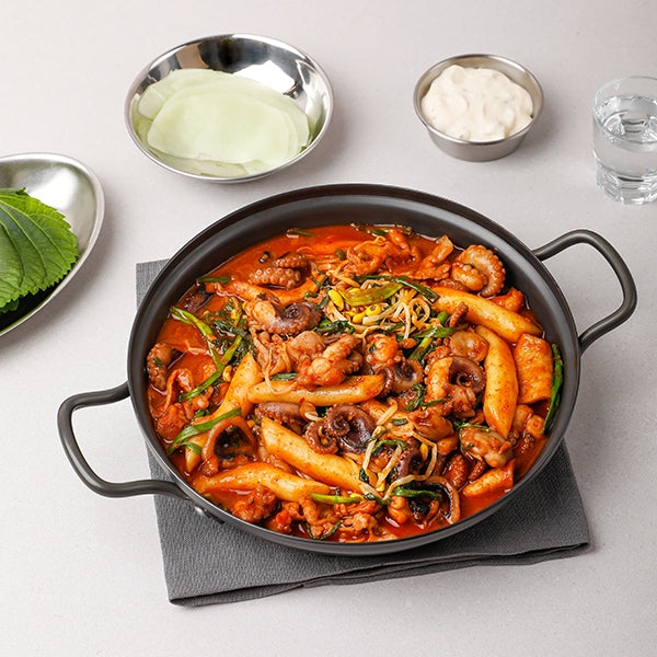 Thành phần: Bạch tuộc, bánh gạo, gochujang, tỏi tươi xay, mạch nha, đường vàng, ớt bột mịn, ớt bột vảy, bột năng, chất điều vị (INS 621), muối, bột tiêu.