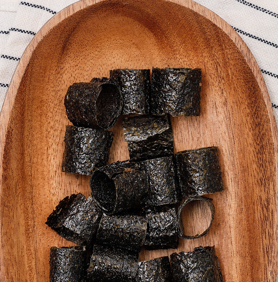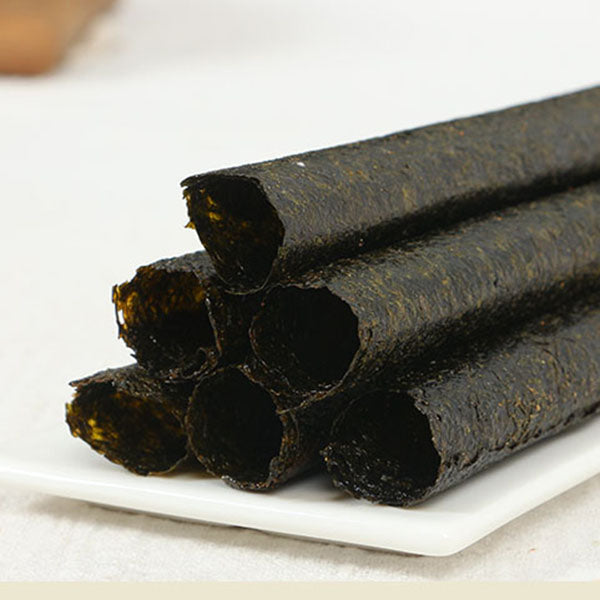Rong biển được làm thành dạng que dài cuộn tròn thành nhiều vòng và kết hợp với các loại gia vị như đường, muối, bột nước tương, bột giấm, cá, dầu mè, bột paprika…mang đến hương vị thơm cay, mặn ngọt rất hấp dẫn, xứng đáng là loại snack nên có trong các buổi xem phim, vui chơi sinh hoạt cùng bạn bè và gia đình.