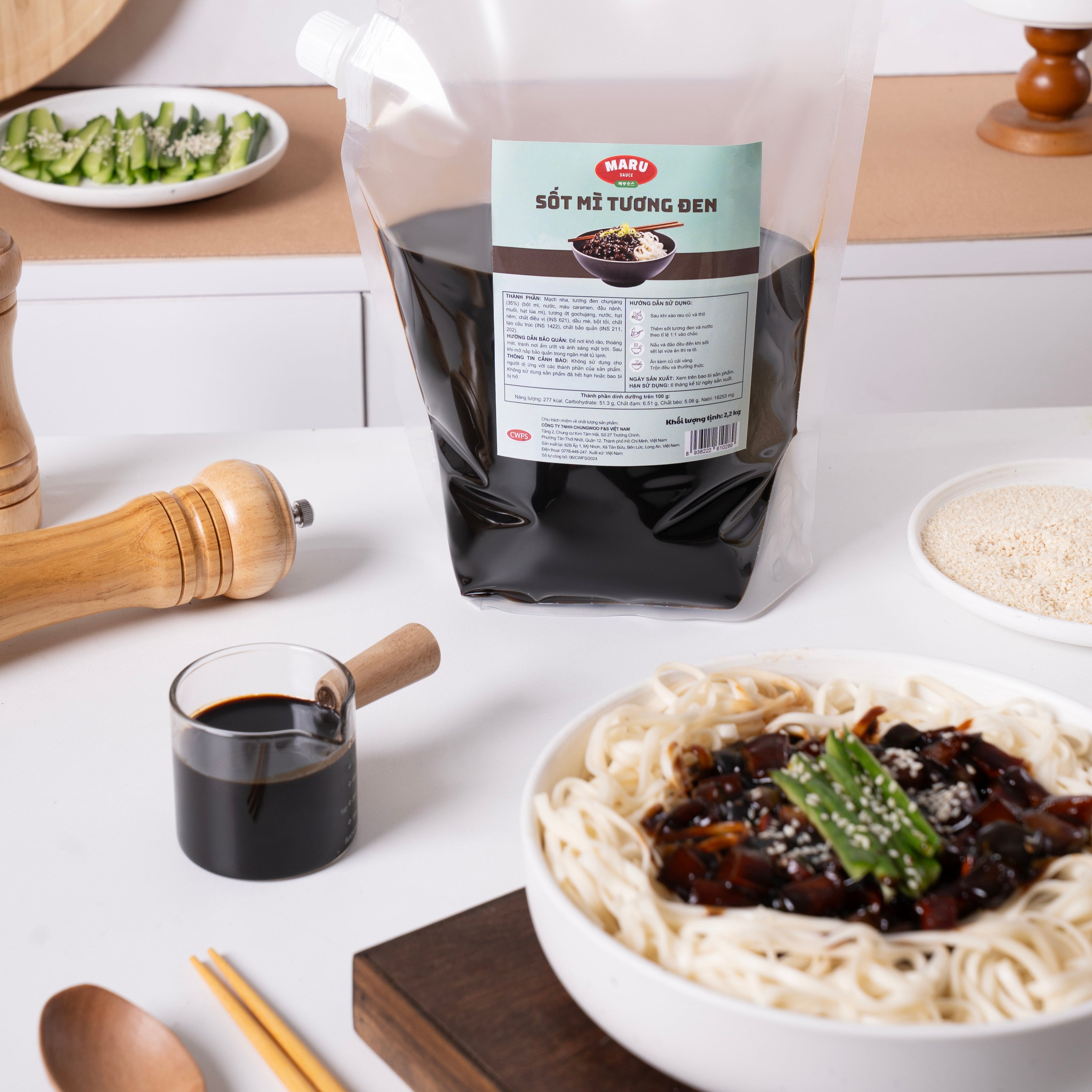 Sốt mì tương đen Maru 2.2kg được nêm sẵn, sánh mịn và giàu hương vị đặc trưng từ chunjang Hàn Quốc. Chỉ cần xào nóng cùng rau củ và thịt, rưới lên mì là có ngay món Jajangmyeon thơm ngon chuẩn vị. Tiện lợi, tiết kiệm thời gian chế biến, phù hợp sử dụng nhà hàng, quán ăn.