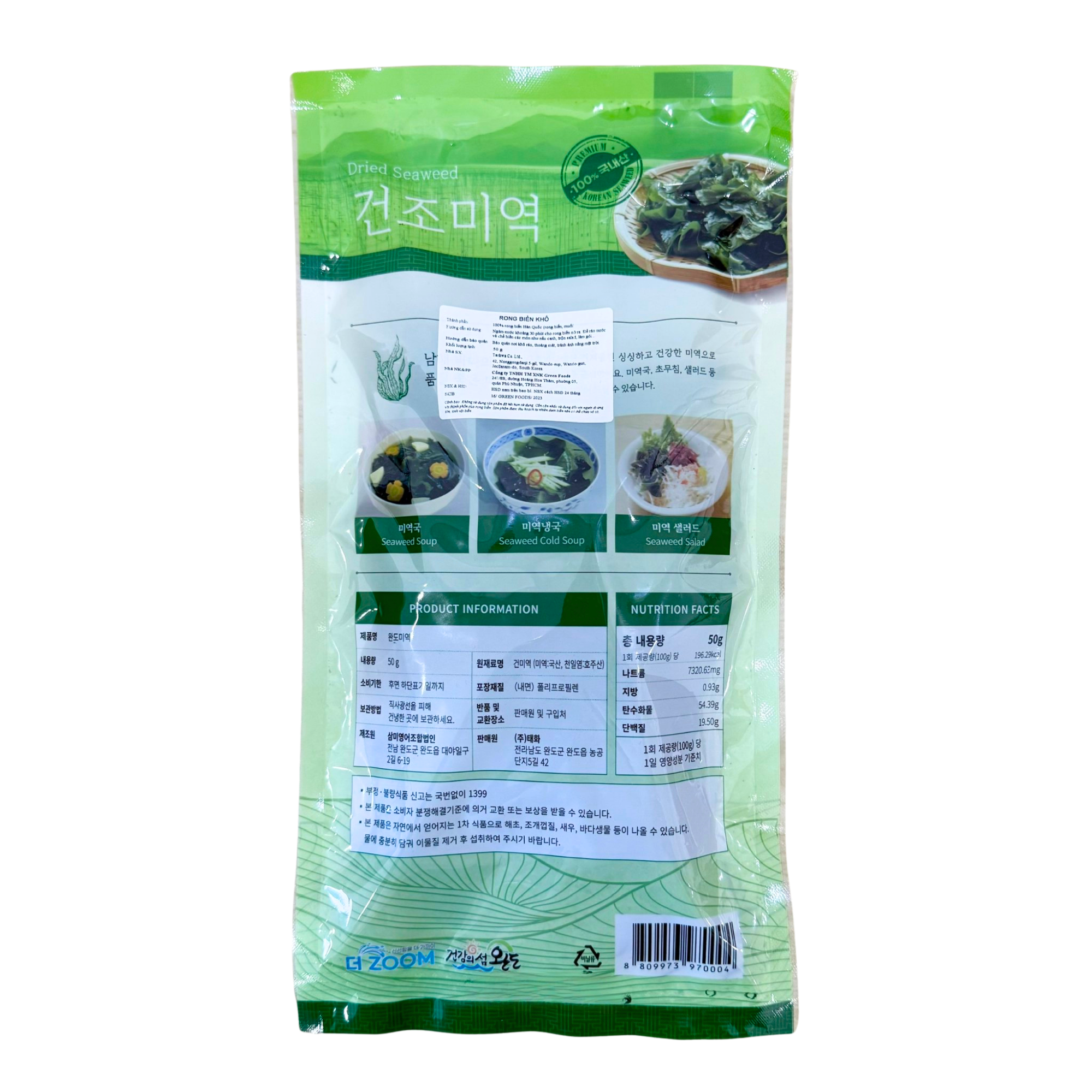 - Một gói 50g có thể dùng cho 4–6 phần canh, tùy lượng rong biển sử dụng mỗi lần nấu.
