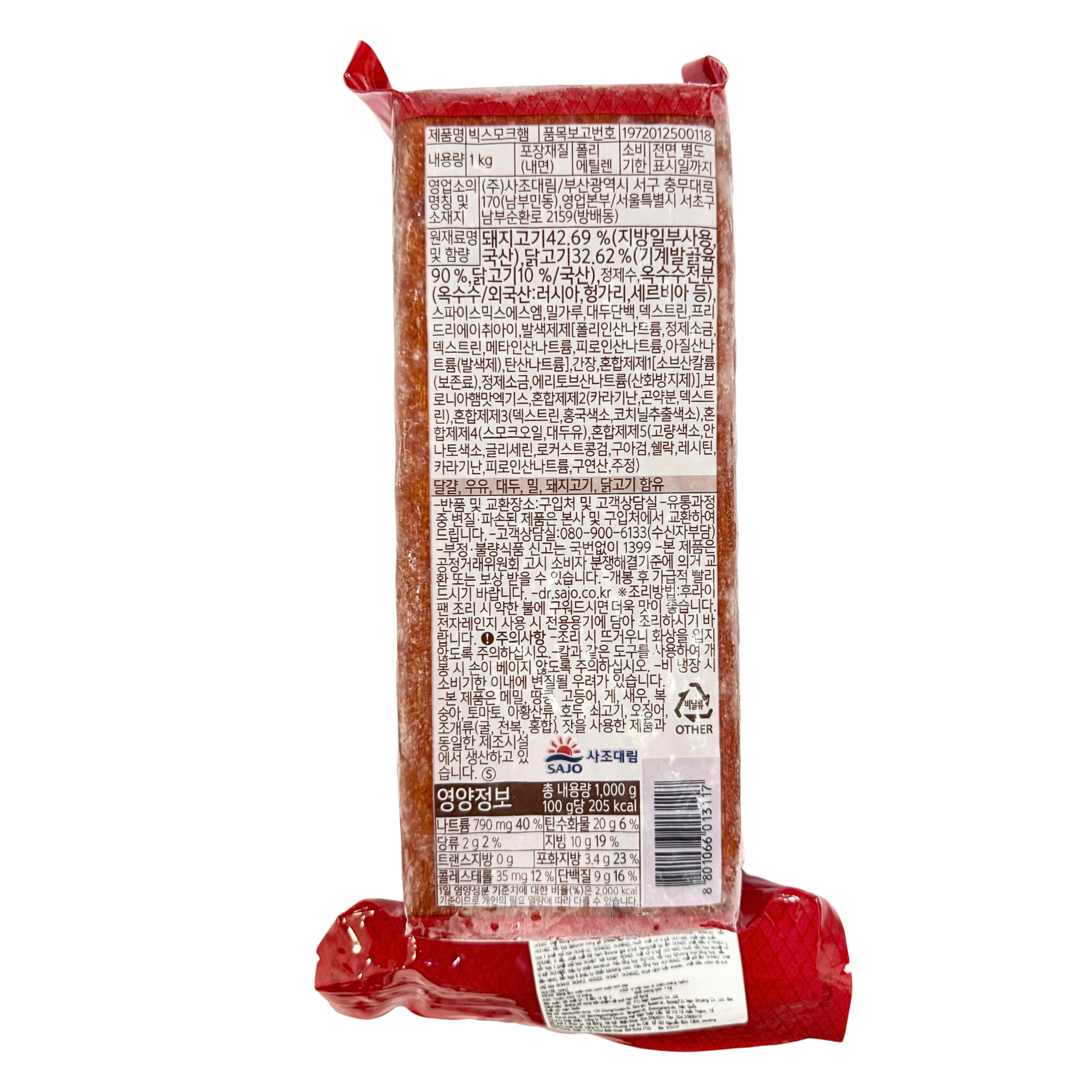 Thành phần: Thịt heo 42.69%, thịt gà 32.82%, nước, tinh bột ngô, muối tổng hợp (chất bảo quản INS202, chất chống oxy hóa INS316), chất điều vị INS621, bột mỳ, protein đậu tương, chất xử lý bột INS1400, hỗn hợp (albumin trứng gà, protein đậu tương, chất nhũ hóa INS469, INS407, INS410), hỗn hợp 2 [chất nhũ hóa INS451(i), INS452(i), INS450(i)], muối, chất xử lý bột INS1400, chất bảo quản INS249), xì dầu, chiết xuất thịt ham Boronia [gia vị thịt ham (chất tạo ẩm INS422, chất điều vị INS621), hỗn hợp 3 (chất nhũ hóa INS407, bột kojac INS425, chất xử lý bột INS1400), muối, hỗn hợp 4 (chất xử lý bột INS1400, màu tự nhiên Monacuo, màu tổng hợp INS124), hỗn hợp 5 (hương khói tổng hợp, dầu đậu nành), hỗn hợp 6 (màu tự nhiên kaoliang color, màu tổng hợp INS160b(i), chất giữ ẩm INS422, chất nhũ hóa INS410, INS412, INS322i, INS407, INS450(i), nhựa cánh kiến shellac, chất điều chỉnh độ axit INS170i, rượu].