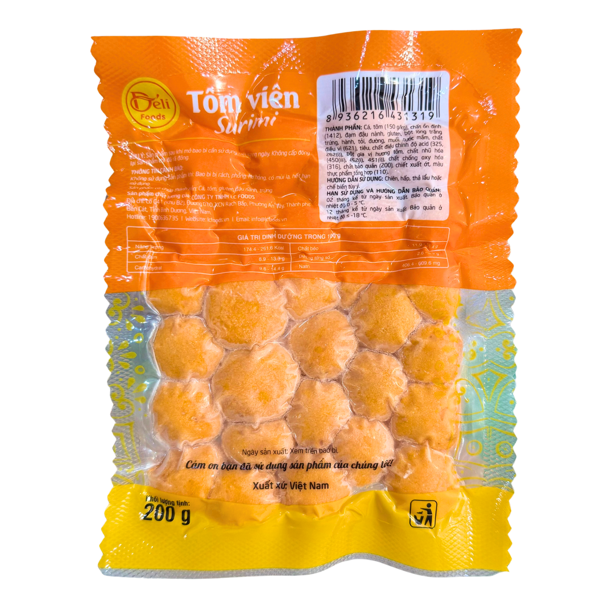 Đã có cá viên, bò viên thì không thể nào thiếu luôn được tôm viên, đây là bộ ba topping ăn vặt thường xuất hiện cùng nhau từ các món chiên, xào đến thả lẩu. Vì thế mà Tèobokki đã nhập về thêm Tôm viên surimi DELI FOODS 200g để bạn có thể dễ dàng bỏ ngay giỏ hàng cả 3 loại.