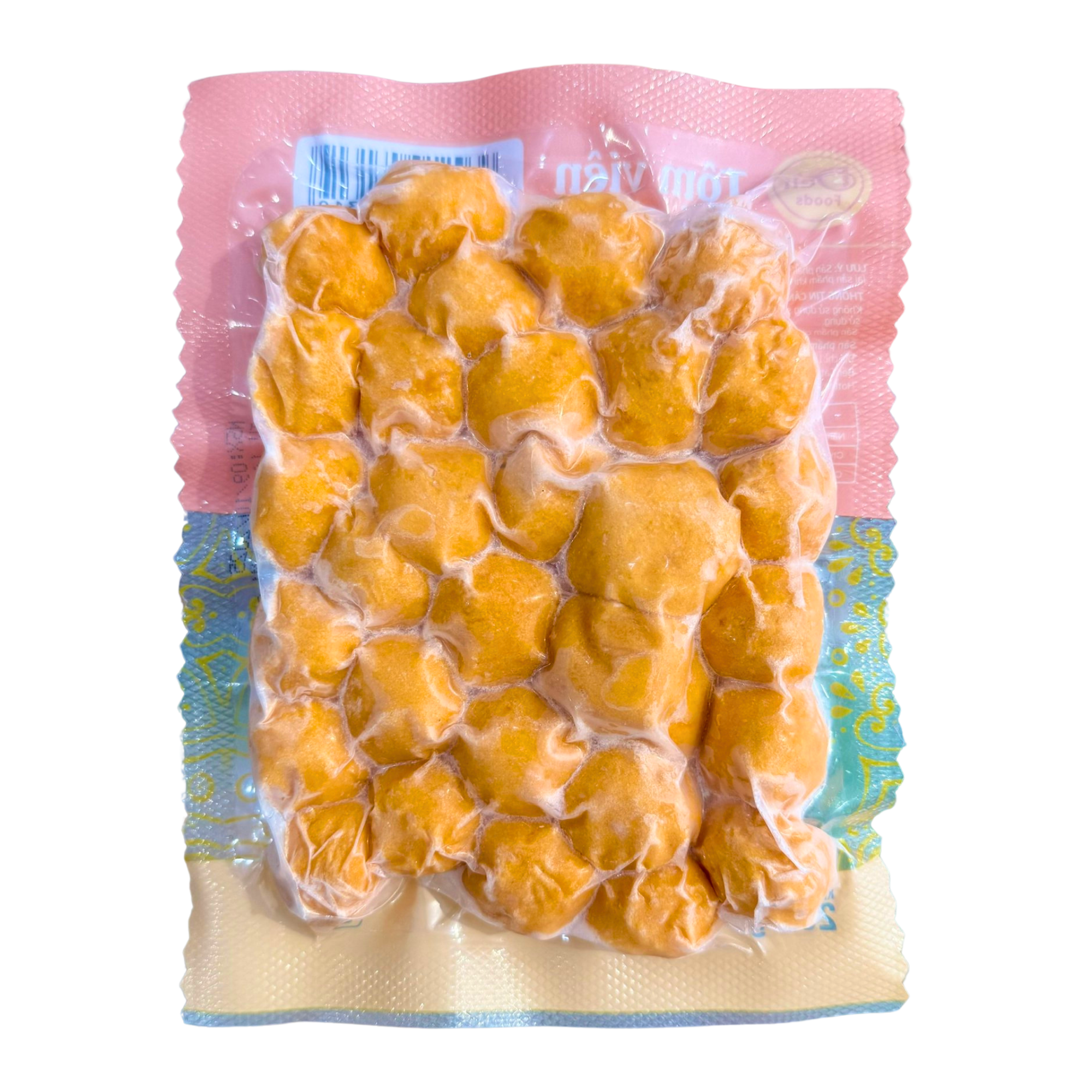Tôm viên có dạng viên tròn với kích thước nhỏ vừa ăn, được làm từ cá surimi xay nhuyễn, tinh bột mì, tinh bột khoai tây, hương tôm kết hợp thêm một số gia vị mang đến từng viên tôm thơm dai sần sật rất vừa ăn.