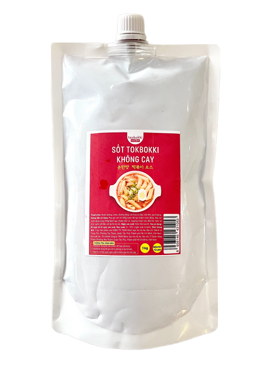 Sốt tokbokki không cay được Tèobokki nghiên cứu làm từ các thành phần như gochujang, cà chua cô đặc, hạt nêm, nước đường...phối trộn đều với nhau dựa trên tỉ lệ hoàn hảo, mang đến hương vị mặn ngọt cân bằng, không quá đặc sệt phù hợp với khẩu vị chung của người Việt.![]()
