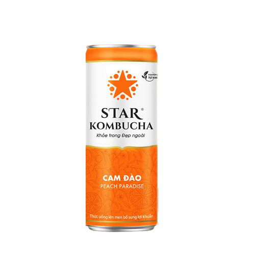 Trà lên men Star Kombucha vị cam đào 250ml có vị chua và ngọt tự nhiên từ kombucha sau khi lên men kết hợp thêm hương vị chua ngọt của cam đào càng làm tăng thêm sự sảng khoái và đậm đà cho món uống. Thích hợp dùng sau bữa ăn hoặc khi bạn cảm thấy mệt mỏi, căng thẳng thì 1 lon star kombucha sẽ giúp bạn giải tỏa và thư giãn, nạp thêm năng lượng cho một ngày dài hoạt động và làm việc.