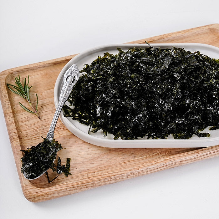 Rong biển vụn – Top nguyên liệu phổ biến được nhiều đầu bếp Hàn sử dụng, có thể rắc và ăn kèm cùng nhiều món, không chỉ giúp trang trí đẹp mắt mà còn tăng thêm phần hấp dẫn về hương vị.