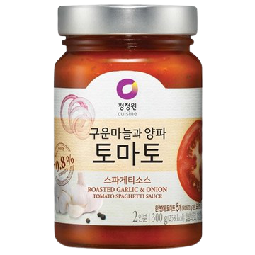 Đây là loại sốt nấu mì Ý đang rất được yêu thích tại Hàn được làm từ những trái cà chua tươi chín đỏ thái mảnh kết hợp thêm tỏi và hành tây mang đến một hỗn hợp sốt chua ngọt đậm đà, thơm dậy hương tỏi. Ngoài ra, sốt còn được cho vào thêm húng quế, rau oregano làm tăng thêm mùi thơm và sự hấp dẫn.