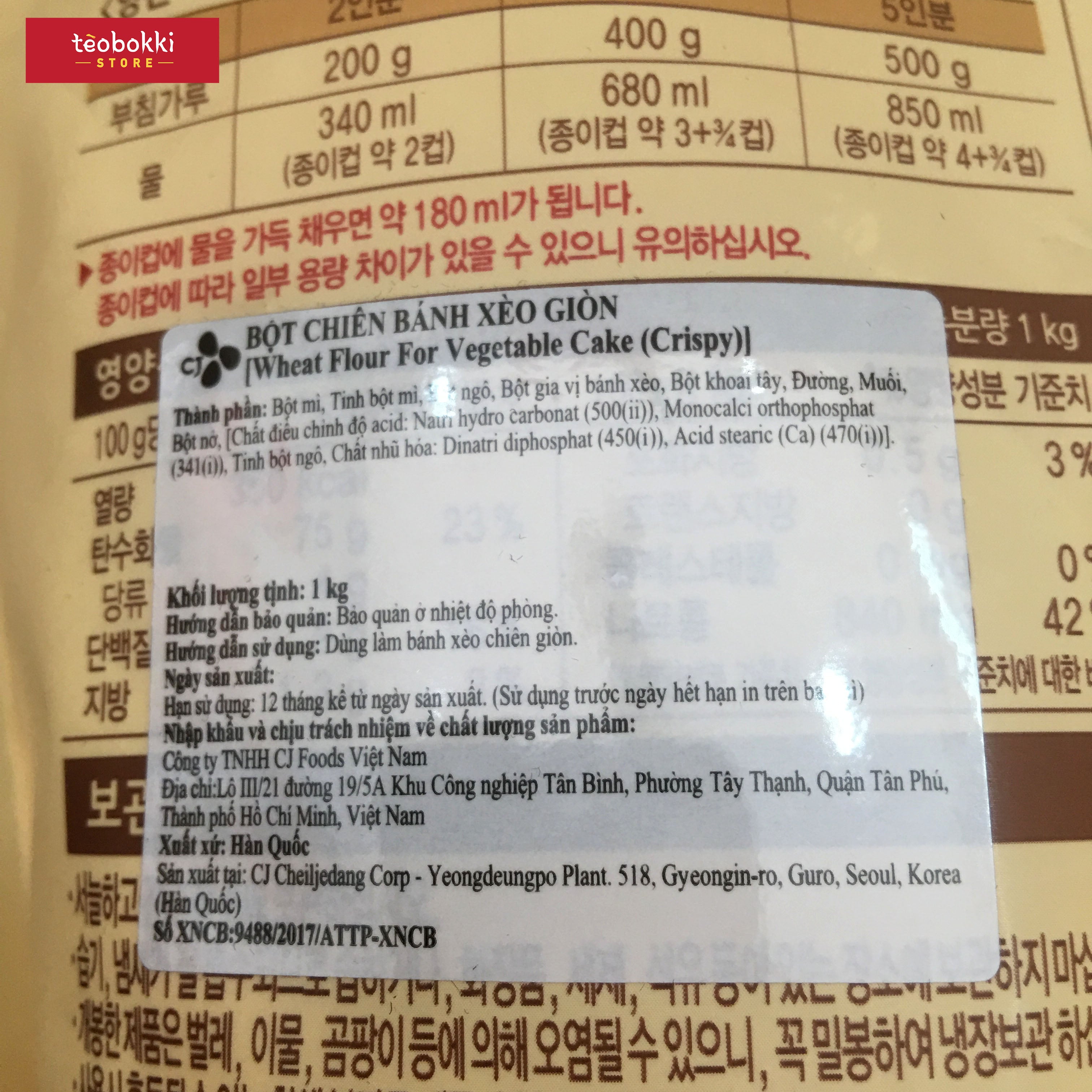 Thành phần: Bột mì, tinh bột mì, bột gia vị bánh xèo, bột khoai tây, đường, muối, bột nở,...