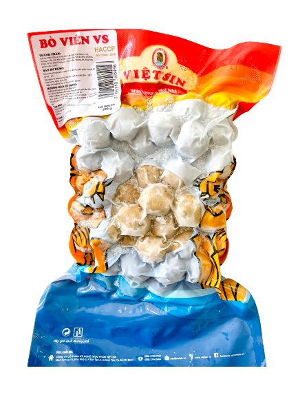 Bò viên truyền thống Việt Sin là loại bò viên có chất lượng đạt chuẩn, được sản xuất dựa trên quy trình nghiêm ngặt từ khâu chọn lọc nguyên liệu, sơ chế biến đến đóng gói thành phẩm.