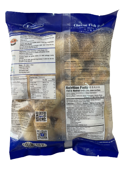 Thành phần: Cá đổng cờ, phô mai, dầu cọ, protein isolate từ đậu nành, tinh bột biến tính, muối, đường, tinh bột bắp, chất điều vị, hương vị tự nhiên và nhân tạo (chứa đậu nành, sữa, hạt cây và lúa mì), lòng trắng trứng khô và màu tự nhiên,...