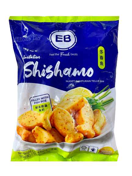 Shishamo có dạng hình như một con cá nhỏ, được làm chủ yếu từ thịt cá tráp xay nhuyễn phối trộn với một số nguyên liệu và gia vị mang đến độ mềm dai sần sật vừa ăn. Lại kết hợp thêm những hạt trứng cá roe nhỏ li ti màu cam lấp đầy xung quang thân cá, tạo nên tiếng nổ tí tách rất thú vị khi vừa cắn vào.