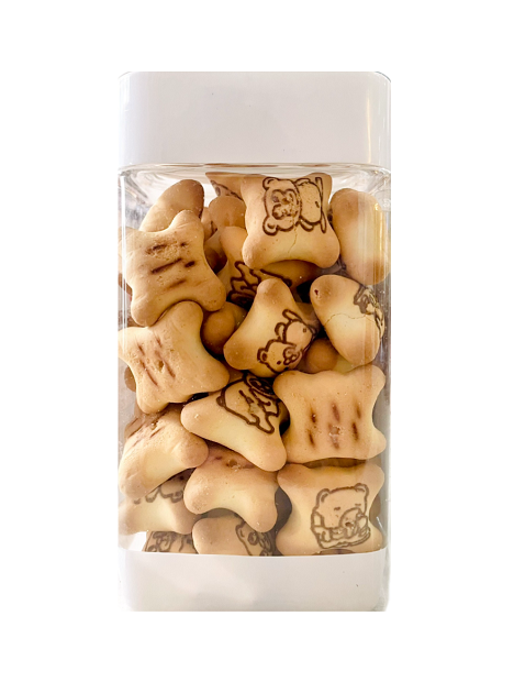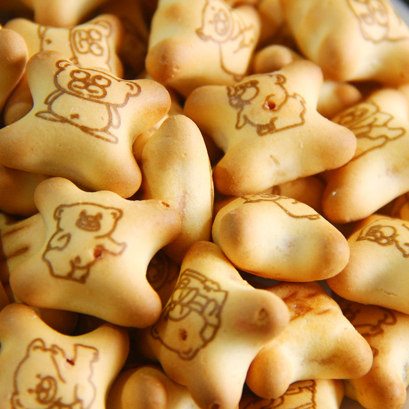 Bánh được in và làm thành hình dạng những chú gấu rất dễ thương với kích thước vừa ăn, có hương vị ngọt, béo nhẹ của sữa và mùi thơm của socola. Chỉ cần cắn một cái bánh sẽ bể tan ra ngay lập tức trong miệng, không sợ bị nghẹn đâu nha!