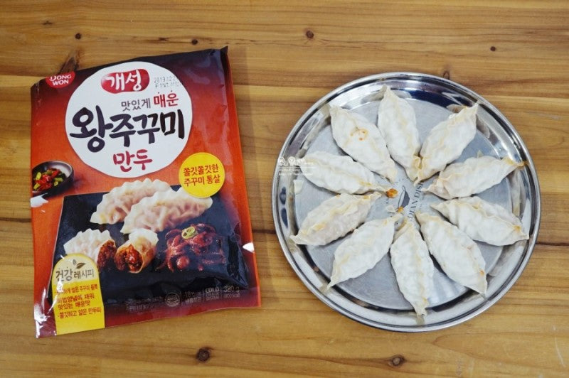Thêm 4 bánh xếp còn đông lạnh vào nước dùng tùy ý và nấu trong khoảng 6 phút để tạo ra món canh soup bánh xếp Hàn Quốc