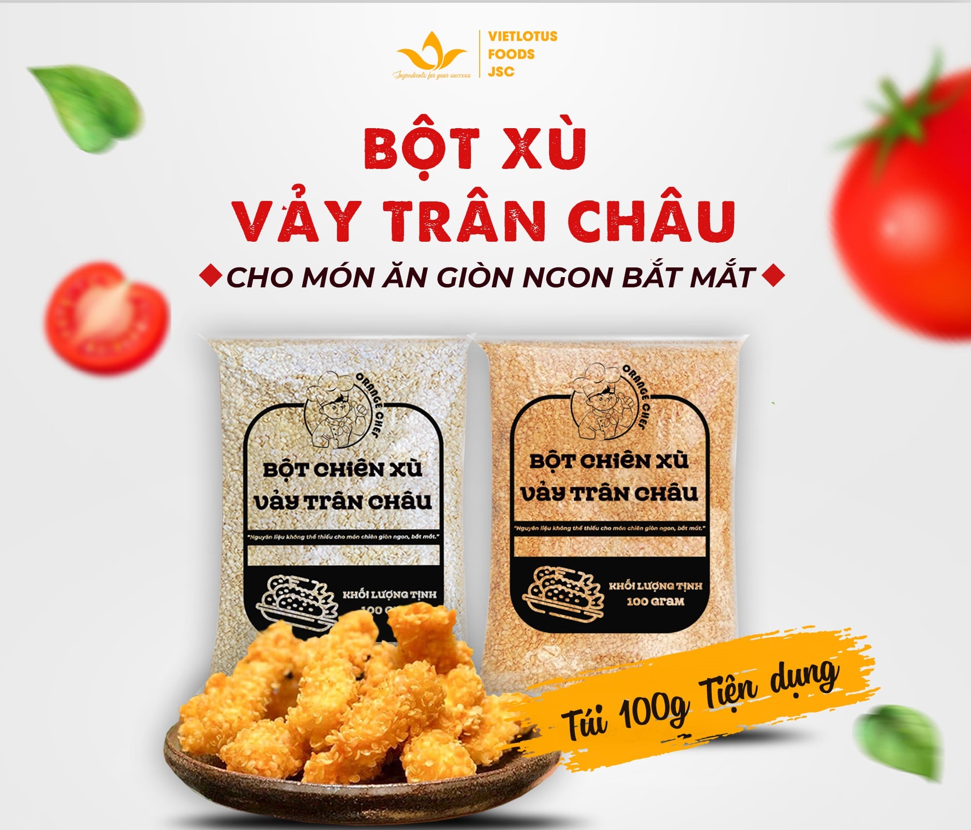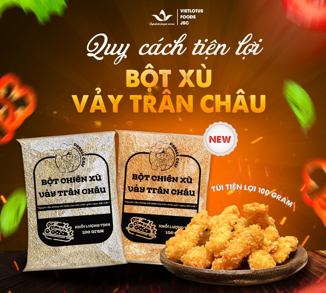 Không phải loại bột chiên xù nào cũng tạo được độ bám, giòn như đúng mong đợi của người tiêu dùng, vì vậy mà gần đây trên thị trường đã xuất hiện thêm loại Bột chiên xù vảy trân châu (hay còn gọi là bột hoa tuyết) tạo độ giòn, bám đều và hình dạng đẹp mắt cho các món chiên khiến nhiều người ưa thích, trong đó phải kể đến loại Bột chiên xù vảy trân châu vàng đến từ Orange Chef