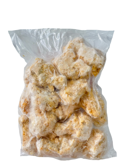Thành phần: Gà cắt miếng >70%, đường, muối, tiêu, bột ớt, nước tương, chất điều vị E621, chất ổn định E451(i), E452(i), hương gà, hương hành, hương tỏi, bột dusting, bột breader, bột batter, bột Predust,...