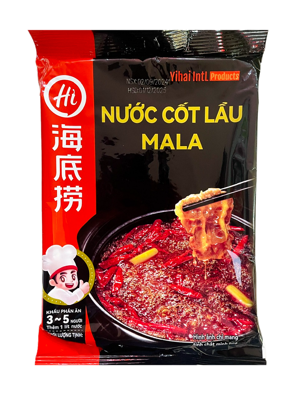 Đây là một sản phẩm đóng gói sẵn tiện lợi đến từ thương hiệu lẩu nổi tiếng thế giới Haidilao. Cốt lẩu được cô đặc từ sự kết hợp của nhiều nguyên liệu và gia vị như tương đậu doubanjiang, gừng, tỏi, đường, đậu nành lên men,...tổng thể tạo nên vị thơm, cay mặn đậm đà cho nước dùng.