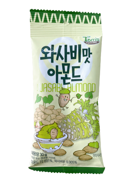 Và một trong những snack về wasabi được nhiều người ưa chuộng và dễ ăn nhất phải kể đến chính là Hạnh nhân tẩm wasabi Tom's Farm 30g