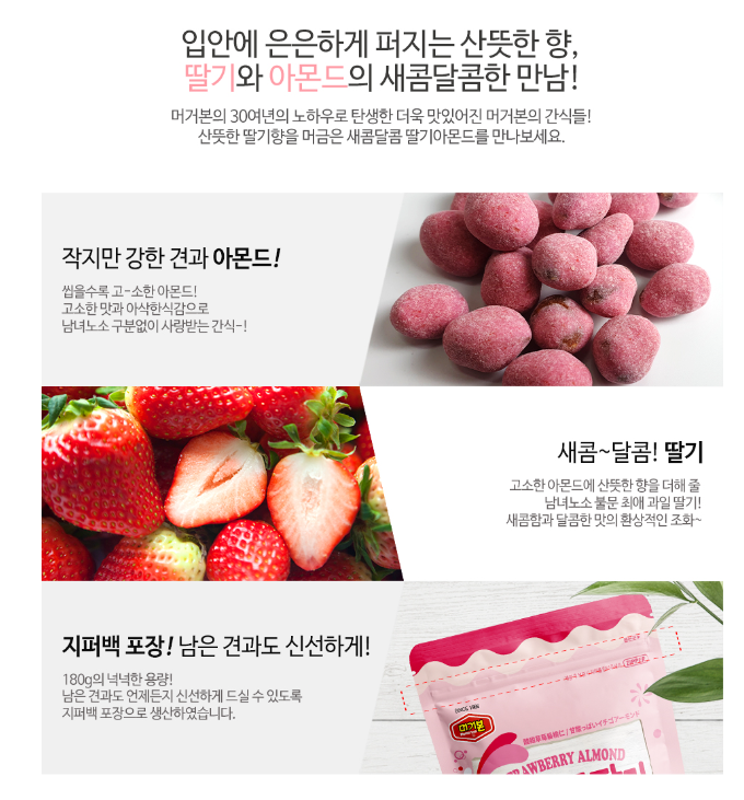 Sau sự thành công của một loạt hạnh nhân bơ mật ong, hạnh nhân vị gà cay,...tập đoàn nữ hoàng các loại hạt Murgerbon tiếp tục cho ra mắt thêm một vị tuy mới nhưng vô cùng quen thuộc, đó là Hạnh nhân vị dâu 180g