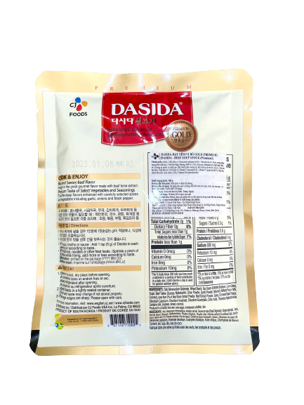 Hạt nêm bò Dasida Gold Premium CJ 100g là một phiên bản nâng cấp đầy chất lượng hơn khi thành phần có chứa chiết xuất thịt bò Hàn Quốc thật, kết hợp thêm một số nguyên liệu như bột hành, bột tỏi, tiêu, nước tương,…hòa quyện đều với nhau, tổng thể tạo nên hương vị đậm đà và sâu sắc, mang đến những món ăn có mùi vị quê nhà quen thuộc.