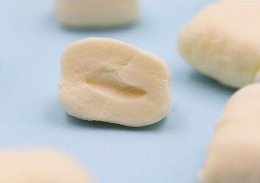Thành phần: Xi-rô tinh bột, sữa đặc (sữa tươi, đường, dầu thô, dầu bơ, đường lactose), đường, dầu thực vật (dầu cọ cứng), kem sữa, váng sữa, dung dịch D-sorbitol 2.7%, gelatin, sản phẩm chế biến từ đậu, chế phẩm hỗn hợp (axit photphoric) tinh bột, đường), pullulan, muối tinh, tinh bột, các sản phẩm chế biến khác, hương tổng hợp (hương sữa, hương bơ), chất nhũ hóa, chất nhũ hóa II, sữa, vitamin E