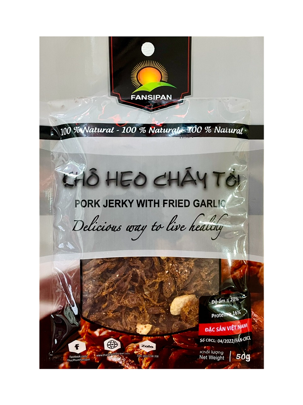 Khô heo cháy tỏi Fansipan được làm từ thịt heo tươi đã qua kiểm dịch chặt chẽ, đảm bảo an toàn và chất lượng.