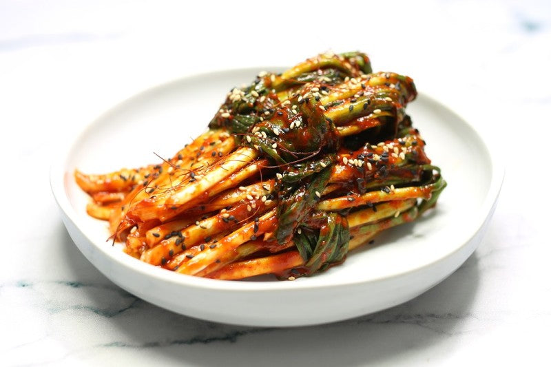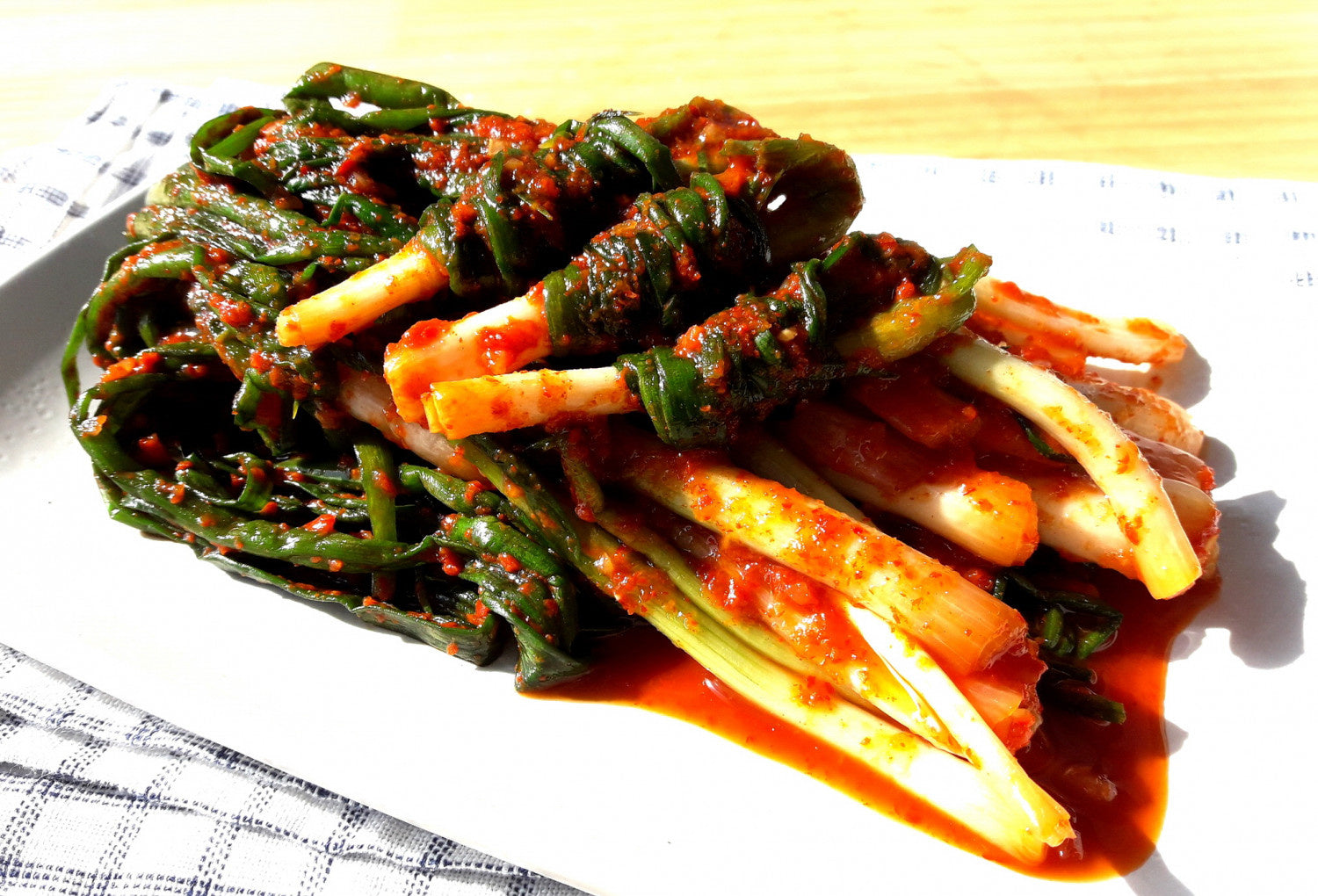 Hành lá vốn là một loại rau quen thuộc trong chế biến các món ăn hằng ngày, nay lại càng được ưa chuộng hơn khi được người Hàn tận dụng để làm nguyên liệu muối kimchi, cho ra đời món kim chi hành lá - một trong những món banchan gây hao cơm nhất trên bàn ăn.