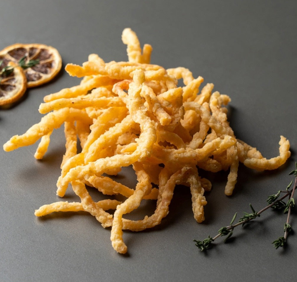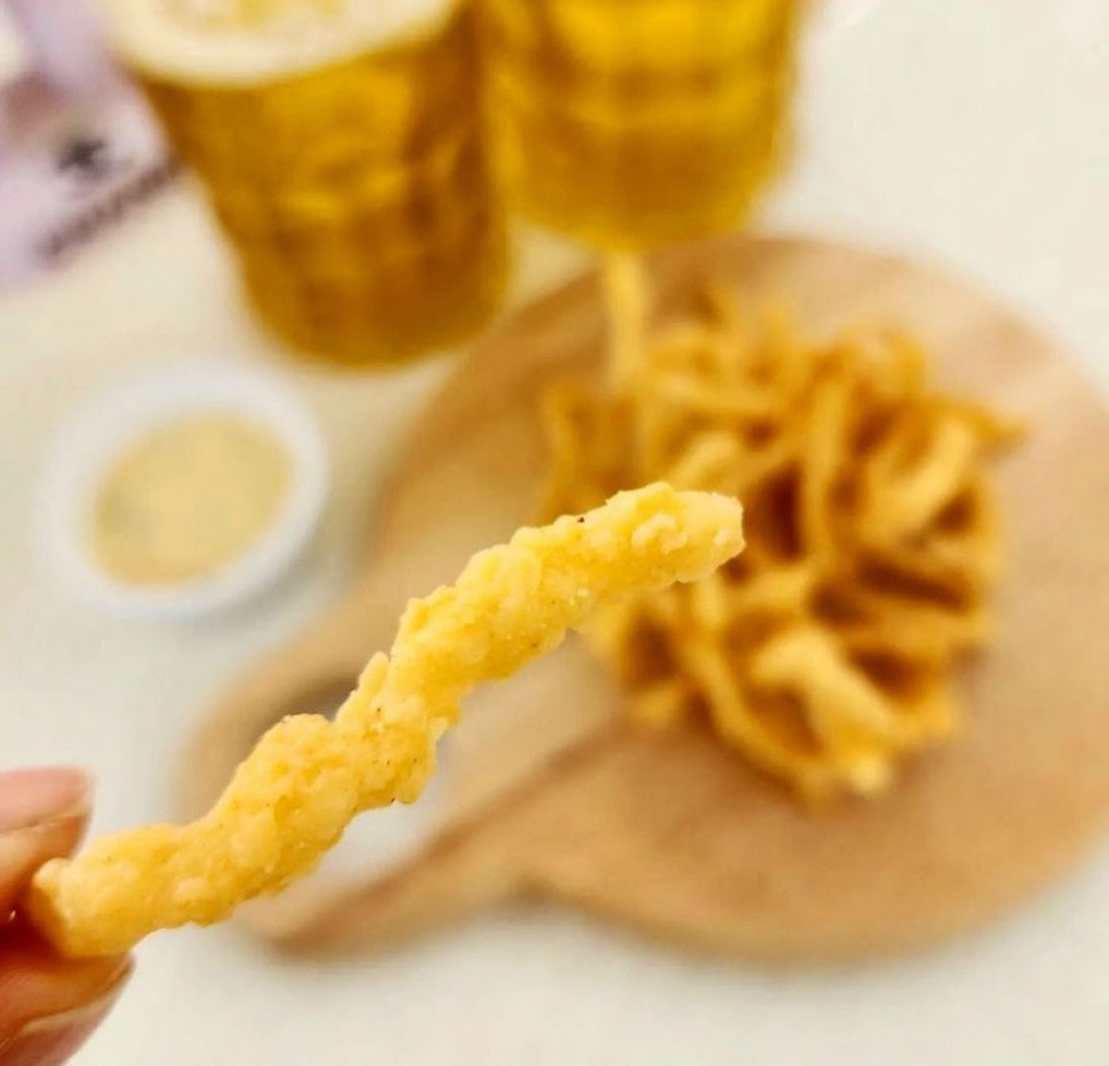 Mực xé giòn có màu sắc và mùi thơm nổi bật, kết hợp vị mặn ngọt và hương vị mù tạt cay thơm nồng, tạo nên sự kích thích vị giác đặc biệt. Với hải sản dai dai, mỗi miếng mực đều mang lại trải nghiệm ăn uống thú vị, đậm đà.