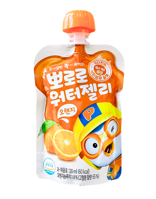 Sản phẩm có bao bì màu cam rực rỡ với nhân vật hoạt hình Pororo ngộ nghĩnh quen thuộc càng làm tăng thêm sự thích thú cho bé. Thiết kế túi nhỏ gọn, có nắp vặn giúp bé dễ cầm uống và tránh bị nuốt.