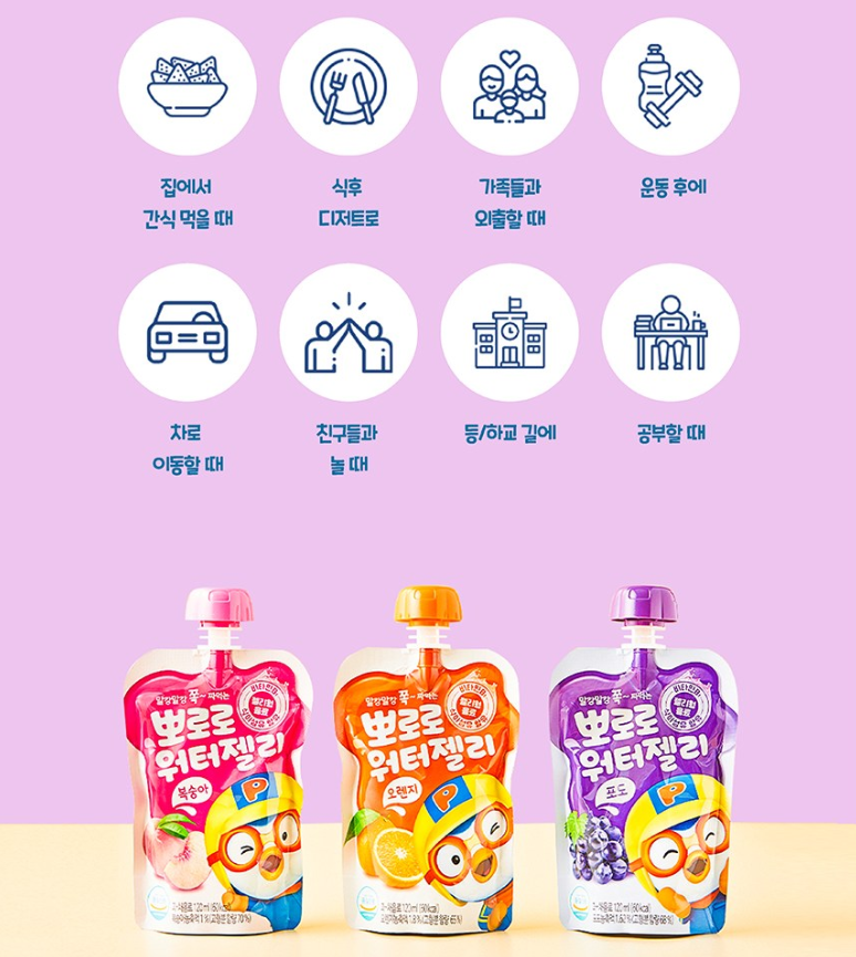 Nước thạch trái cây Pororo Paldo là một loại thức uống dạng thạch rất được trẻ em Hàn ưa thích, giúp bổ sung vitamin B1 và chất xơ hỗ trợ cho sự phát triển của trẻ, được kết hợp với 3 hương vị trái cây đặc biệt là nho, đào, cam mang đến cho bé món uống bổ dưỡng, thơm khó cưỡng.