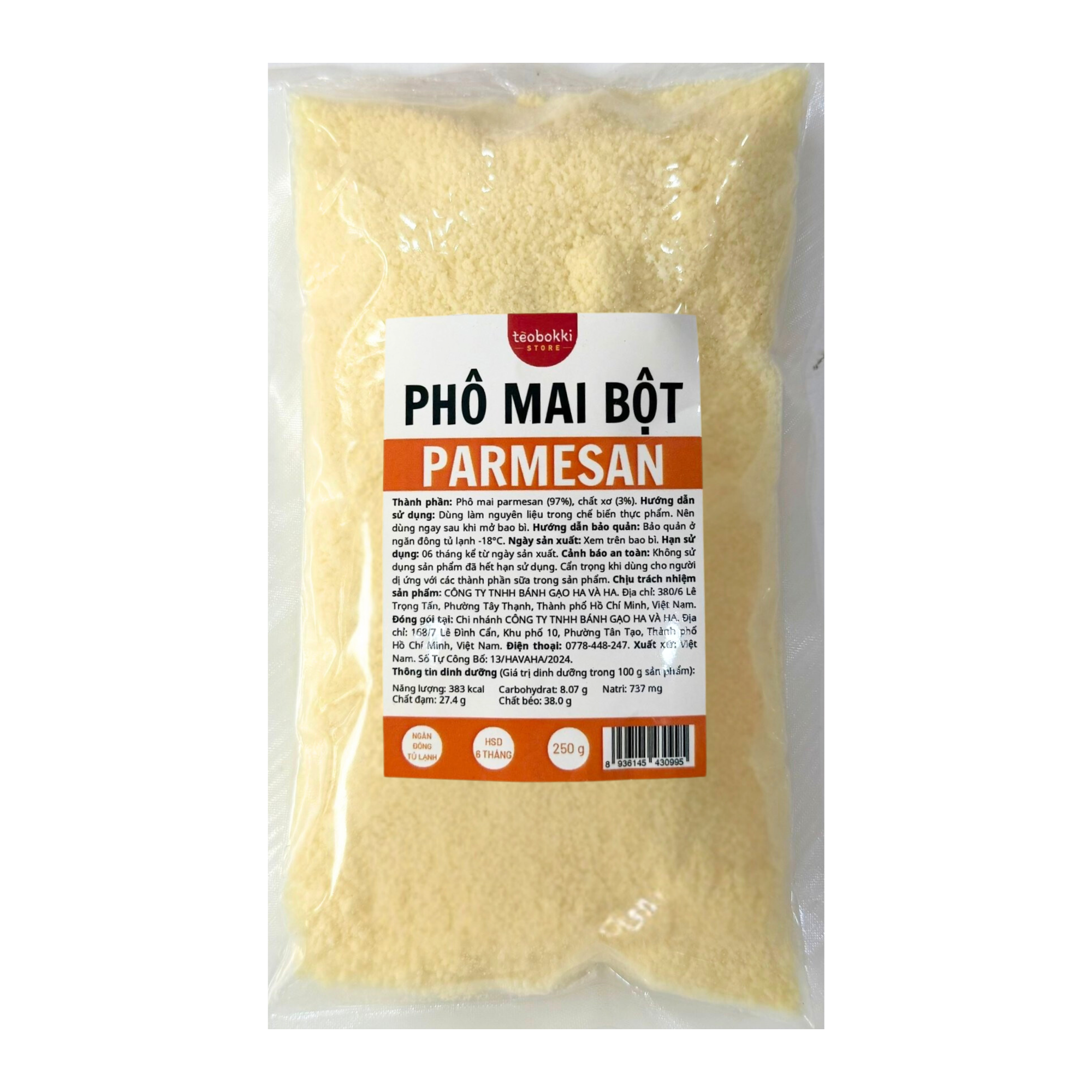 A: Là phô mai Parmesan được xay mịn, dùng như gia vị để rắc trực tiếp hoặc chế biến món ăn.