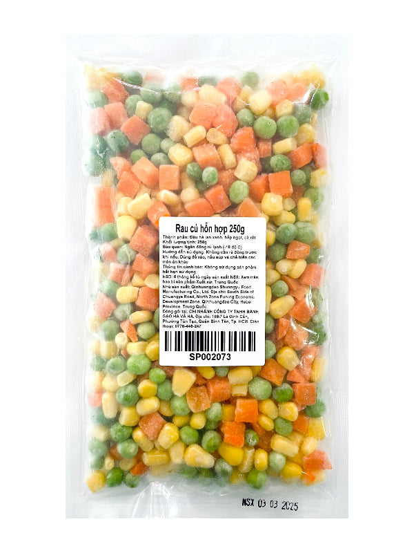 Tiện lợi tối đa – Không cần cắt gọt, rửa sạch hay nhặt bỏ phần dư thừa. Mở túi là chế biến ngay. Thành phần chính bao gồm đậu hà lan xanh, cà rốt và bắp ngọt.