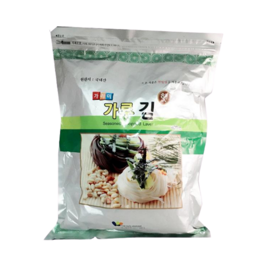 Rong biển vụn (hay còn gọi là vụn lá kim) là một nguyên liệu phổ biến được người Hàn sử dụng rất nhiều bởi tính tiện lợi và dễ ăn.