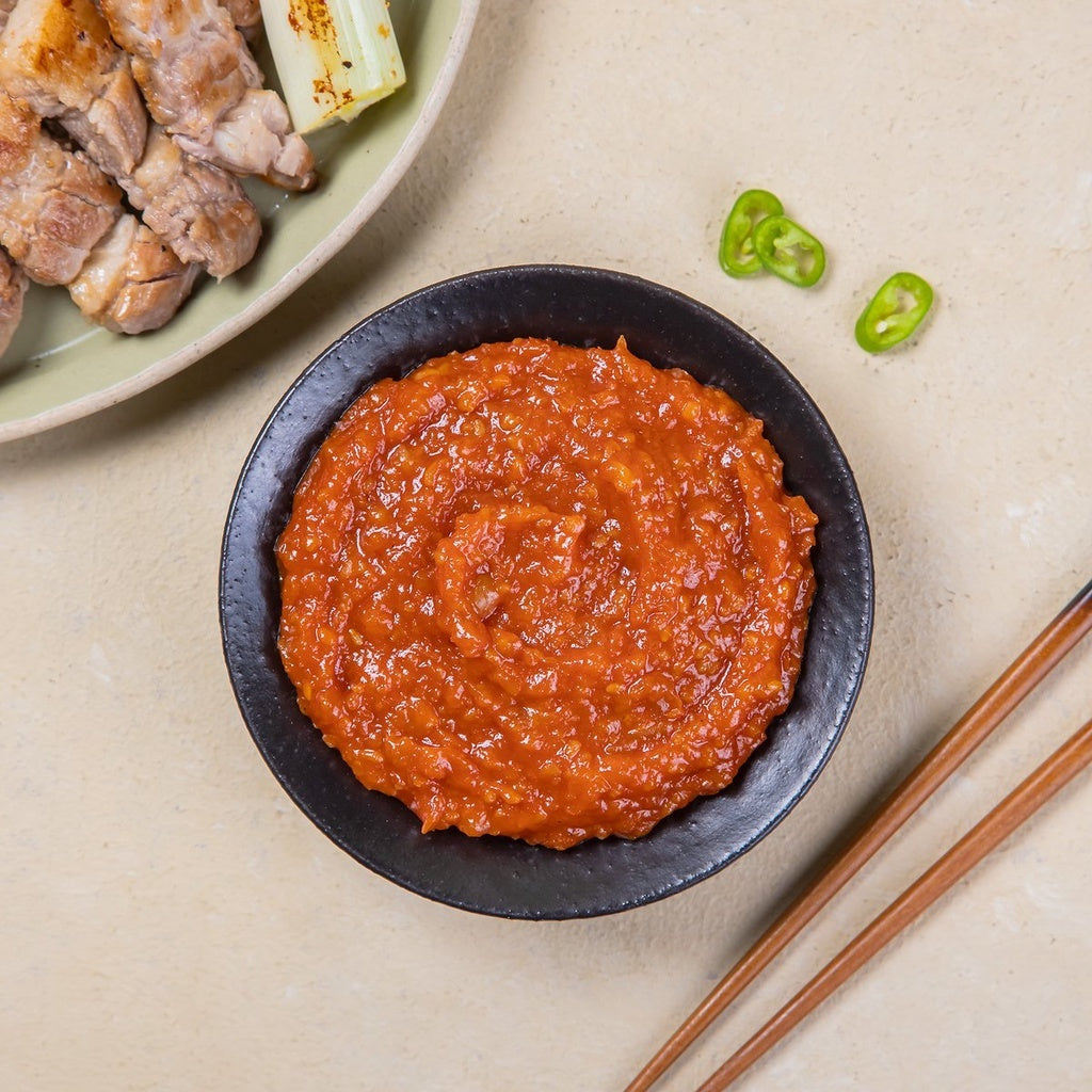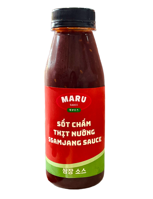 Sốt chấm thịt nướng Maru được làm từ công thức đặc biệt, là một sự mix hoàn hảo của nhiều thành phần như tương ssamjang, tương ớt gochujang, mạch nha, cà chua xay, ớt bột, bột nêm gà.