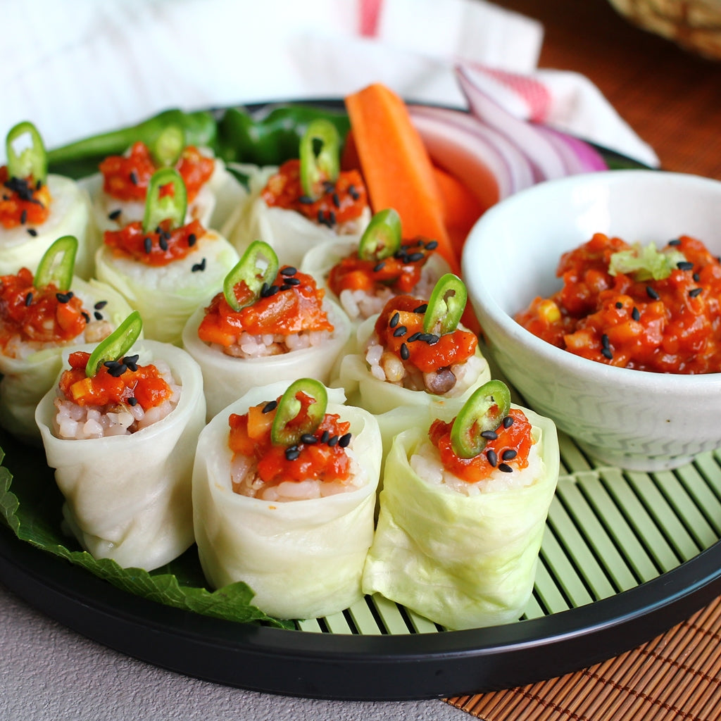 Chỉ cần phết một chút ssamjang lên miếng thịt, sau đó cuộn cùng với lá mè, dưa chuột, cà rốt...là bạn đã có ngay một cách ăn hấp dẫn cho một bàn tiệc thịt nướng thơm nghi ngút khói.