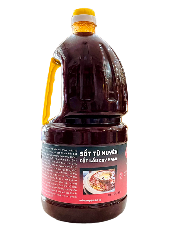 Sốt Tứ Xuyên - Cốt lẩu cay mala Maru chai 2.15kg là giải pháp hoàn hảo cho các nhà hàng và quán ăn muốn mang đến trải nghiệm ẩm thực Tứ Xuyên cay tê đặc trưng với chi phí tiết kiệm.
