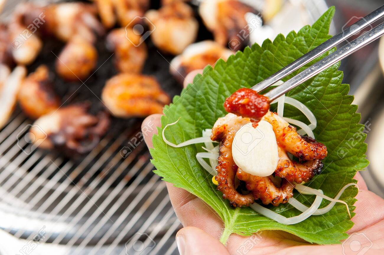 Vẫn là hỗn hợp được trộn giữa tương đậu và tương ớt lên men có mùi thơm bùi của chỉ cần phết một chút sốt lên bề mặt miếng thịt, cuộn cùng với xà lách xoăn, dưa chuột...là đủ khiến cho người ăn ghiền ngất ngây.